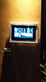 店先の広告モニター。